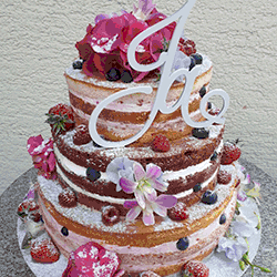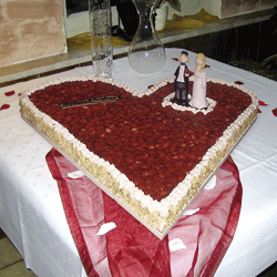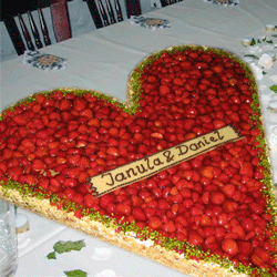 Erdbeerherzen und Hochzeitstorten in verschiedenen Größen