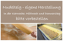 In der Karwoche gibt es Mittwoch und Donnerstag unseren hausgemachten Nudelteig – bitte vorbestellen!