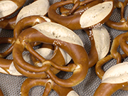 Wir schlingen jede Brezel noch einzeln mit der Hand, nach tradtionellem Familienrezept.